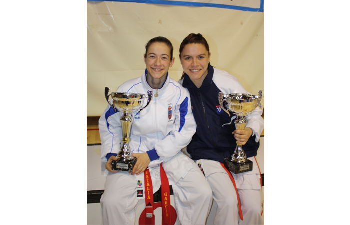 Natalia García Suárez, actual Campeona de Europa, se proclamó Campeona de España Senior por cuarto año consecutivo. En el primer combate eliminó a la representante de la Federación Vasca: Olatz Gil por 2 a 0. En la segunda eliminatoria ganó a Estela López, representate de Valencia, en el combate de desempate por 2-1 y en el pase a la final ganó a la madrileña Rocío Sanchez por 3-0. Ya en la final Natalia se impuso a la Aragonesa Elisa Tuquet por 3-0. En la foto Natalia García y Gema Alias de la Federación Madrileña y campeona de España en -55 kg. |