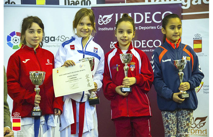 Irene Anievas Vázquez consiguió, por segundo año consecutivo, la medalla de bronce. El año pasado en la modalidad de kata y éste en la modalidad de kumite. También disputó la medalla de bronce en kata Alevín, quedando cuarta clasificada.